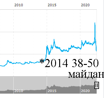 То есть, до начала госпереворота на Украине и начала экономической войны против нас доллар стоил грубо 40. Хочу отметить, что скрытая война началась несколько ранее. До этого доллар стоил 30-38. Хорошо помню, что тогда некоторые экономисты говорили, что он должен стоить 23.