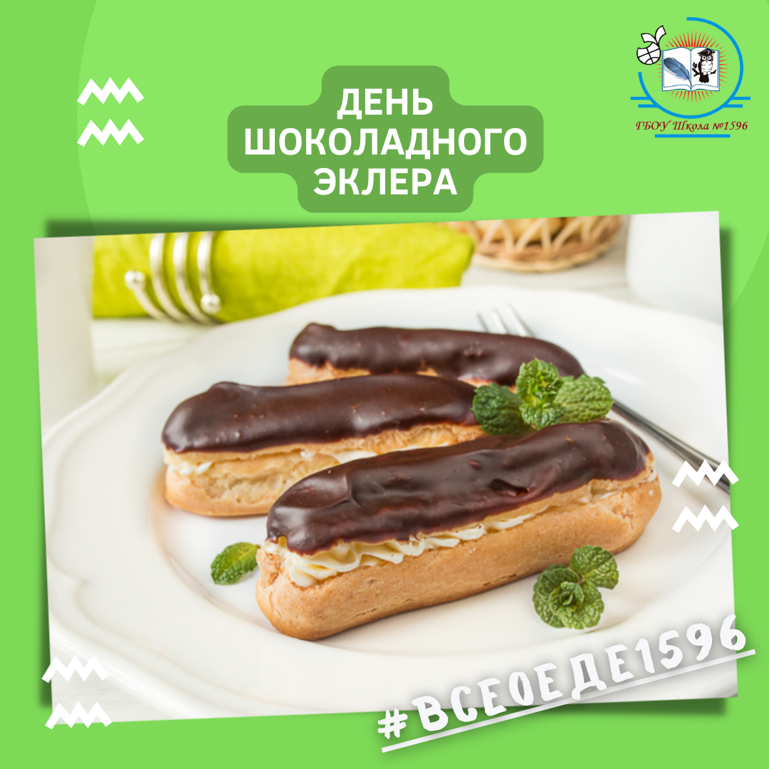 Весь мир 22 июня отмечает один из вкуснейших гастрономических праздников планеты - День шоколадного эклера. Эклер является одним из самых популярных десертов в мире - у него восхитительная начинка (как правило - заварной крем) и шоколадная глазурь. В каждой стране заварные пирожные готовят и называют по-своему. Если в России эклеры сохранили традиционное название, то в Испании, например, эти пирожные называются «пепито», в Аргентине же эклеры именуют не иначе как «посох Якова». Самый верный способ отметить День шоколадного эклера - это насладиться удивительным десертом. И сегодня мы поделимся с вами рецептом этого сладкого деликатеса. #ДОНМ #НашеПитание #Школа1596 #ВсеОЕде1596