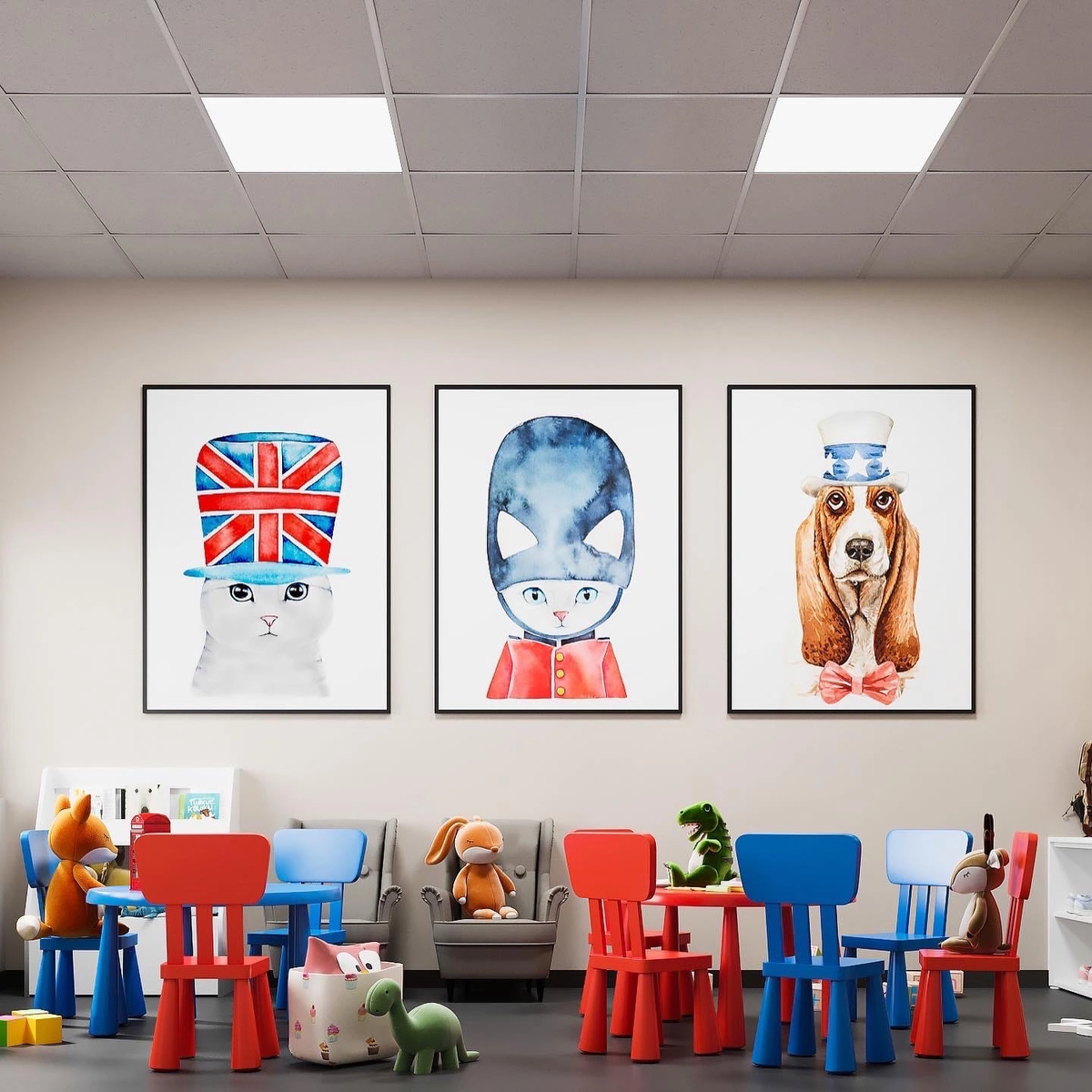 Студия английского языка для детей BEBIGGER , 200 кв.м Основной задачей было совместить Великобританию и США - страны, у которых нет ничего общего, кроме языка 😉 Поэтому, в проекте можно встретить всё: и винтажный декор, свойственный строгому консервативному английскому стилю, и, одновременно, граффити, кирпич, постеры, модную мебель, отражающие современный подход и свободу 👌 У помещения уже была базовая отделка, поэтому сложность состояла не только в создании понятного и «вкусного» сплетения двух культур, но и в адаптации проекта под существующую отделочную реальность 😅 Совсем скоро в Туле на одно красивое место станет больше 😉