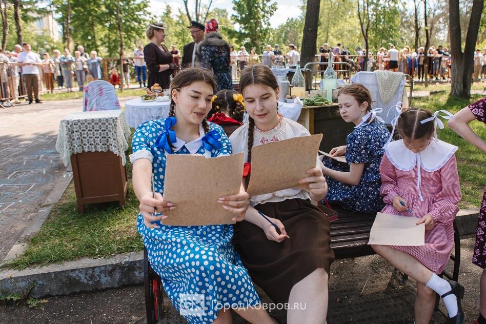 …Локациями стали воспроизведение работы тира, радиокружка и школьный урок периода 40-х годов. В качестве пионеров советской эпохи выступали ковровские школьницы. Девочки, кстати, именно реконструкции узнали в деталях, что такое школьная форма, пионерский галстук, и как его правильно завязывать.