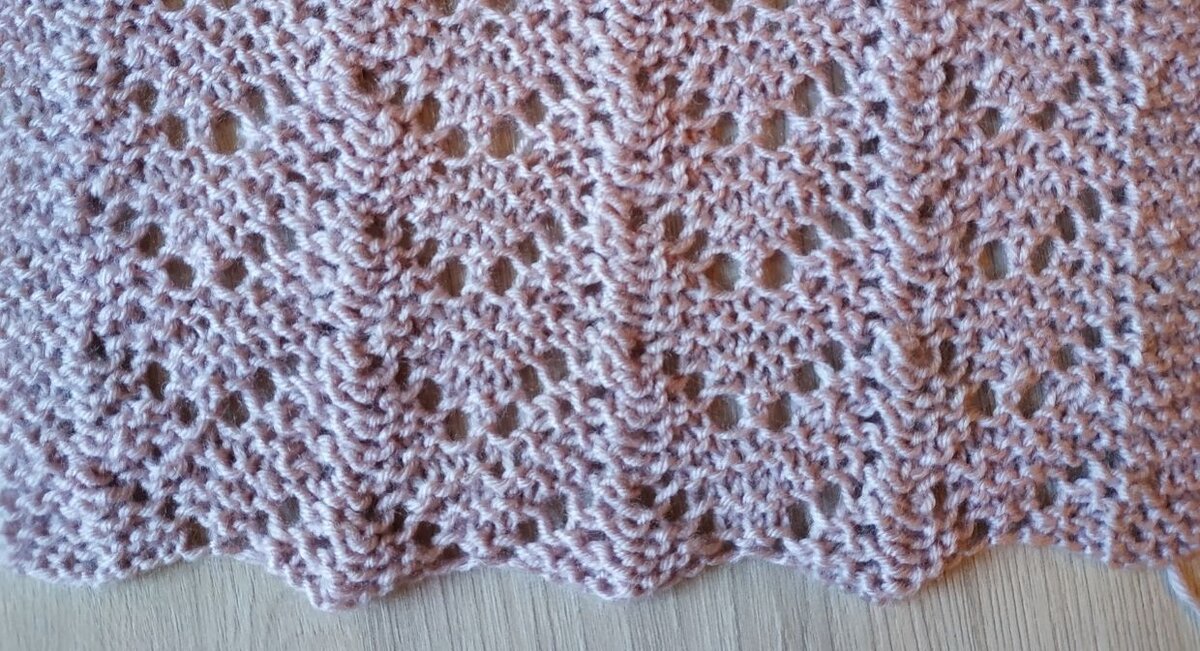 Сочетание ажурного рисунка и платочной вязки в волнистом узоре для вязания на спицах