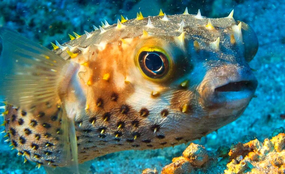 Рыба фугу Какая рыба является самой ядовитой в мире Самой ядовитой в мире рыба считается рыба фугу. В Японии блюда, приготовленные из фугу, невероятно популярны. Однако известно, что рыбы, относящиеся к данному виду, сильно ядовиты, поэтому перед употреблением в пищу, требуется совершить ряд определенных действий. Но помимо высокого содержания вредного тетродотоксина, фугу обладает множеством особенностей, которые люди уже давно успели изучить. Характеристики рыбы фугу Фугу не может похвастаться внушительными размерами. Представители некоторых ее видов способны вырастать до 80 см в длину, однако в большинстве своем их габариты не больше 30 см. В случае возникновения опасности существо надувает брюхо, чтобы казаться больше. Иглы в этот момент меняют свое направление и начинают торчать в стороны. Фугу надувает тело до шарообразного состояния за счет набора внутрь большого количество воды и воздуха. Габариты рыбы могут увеличиваться в 4 раза. Где живет рыба фугу Основным ореолом ее обита