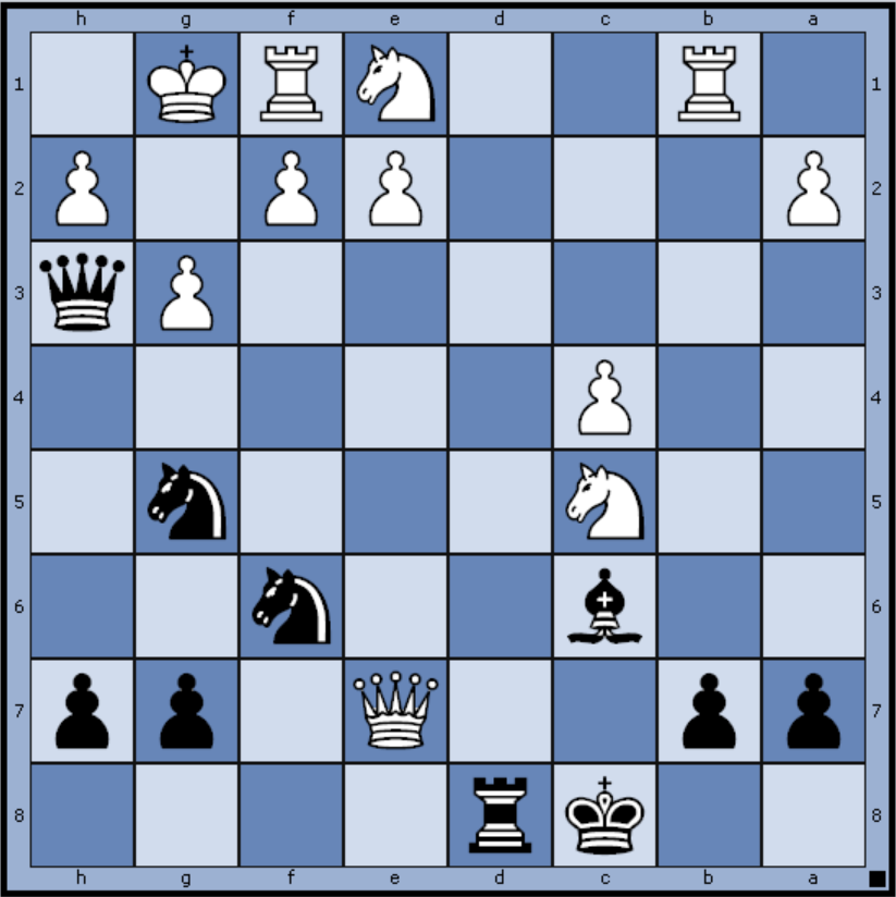 Решение:1...Qxh2+ 2.Kxh2 Ng4+ 3.Kg1 Nh3# *.