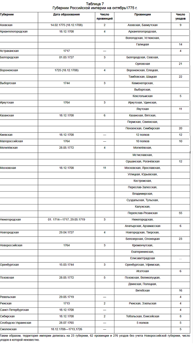 По данным Арсеньева, в Российской империи в конце 1785 г. имелись следующие губернии .