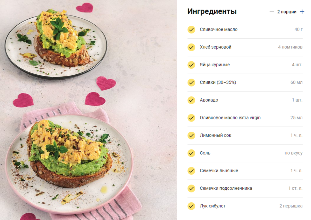 Представляете, как здорово найти рецепты блюд, которые можно приготовить за 30 минут? И при этом не идти в магазин за ингредиентами, а достать их из своего холодильника. Вам не придется представлять, если прочитаете эту статью. В ней собрали простые рецепты из приложения Лента Онлайн, продукты для которых привезут вам до двери. 1. Тосты с пастой из авокадо и яйцами скрэмбл ⏰ 15 минут 2. Салат с жаренными на гриле нектаринами и фетой ⏰готовить 20 минут, мариновать 12 часов 3. Курица с соусом песто и лапшой из цукини ⏰готовить 20 минут, мариновать 15 минут 4. Ягодная пицца ⏰ готовить 25 минут, настаивать 1 час 5. Том ям по-средиземноморски ⏰ готовить 30 минут Эти и другие рецепты вы можете найти в приложении Лента Онлайн. Там же — заказать все нужные ингредиенты с быстрой доставкой: и лайм, и соус песто. Заказ привезут в течение полутора часов, при этом можете выбрать конкретное время доставки, чтобы продукты приехали прямо к ужину. Листайте дальше, чтобы перейти на сайт и получить скидк