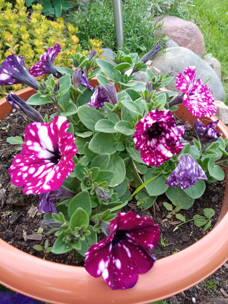 В прошлом сезоне у меня были очень красивые вегетативные петунии, и решила сохранить их зимой, чтобы экономия была экономной. Вообще вазон с взрослой вегетативкой, будь то петуния или калибрахоа, стоит около тысячи рублей. Череночки по весне стоят от 100 до 200, я покупала по 160. Поэтому идея сохранить их зимой и получить красивые вазоны бесплатно, кажется весьма заманчивой. У меня это был первый опыт. На хранение поехали пять горшков. Из них две петунии после непродолжительного времени засохли. Просто на ровном месте, хоба, и нету. Оставшиеся три пережили новый год, вроде всё с ними было нормально, начали отращивать побеги. Далее произошло вот что. Я нарезала побеги и попыталась укоренить. Часть в воде, часть в земле. В итоге в воде всё сгнили, в земле почти все. А после этого засохли и основные растения. В сухом остатке укоренилось ровно два черенка, причём одного сорта. Но даже укоренившиеся, выглядели они так, что обнять и плакать. В апреле я прикупила ещё три черенка в местн