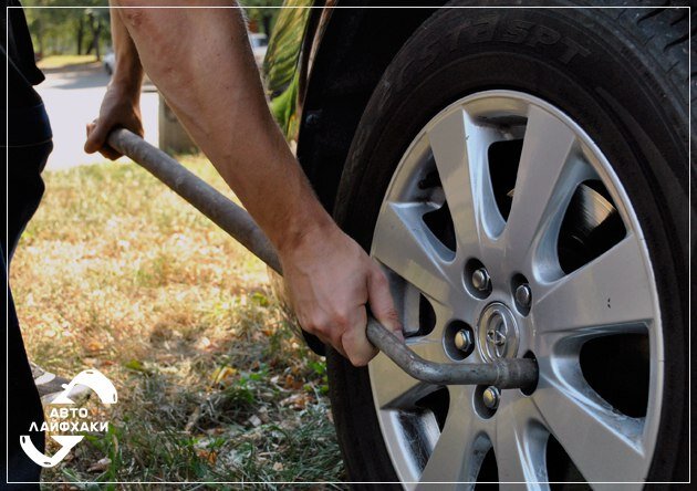 Если гайка на колесе прикипела и не поддается откручиванию, рекомендуем слегка ослабить остальные гайки, затем разогнаться на автомобиле до 10 км/ч и резко остановиться;)