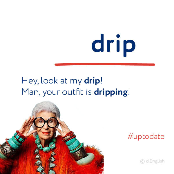 Проследуем же на Urban Dictionary! С этим сайтом, конечно, необходимо быть осторожными, потому что это всё же словарь пользовательский, и каждый пишет, что хочет. Однако, рассмотрев несколько постов, мы приходим к выводу, что drip в современном сленге нередко либо используется как прилагательное, значащее «модный, стильный», либо субстантивируется в «стильный образ».