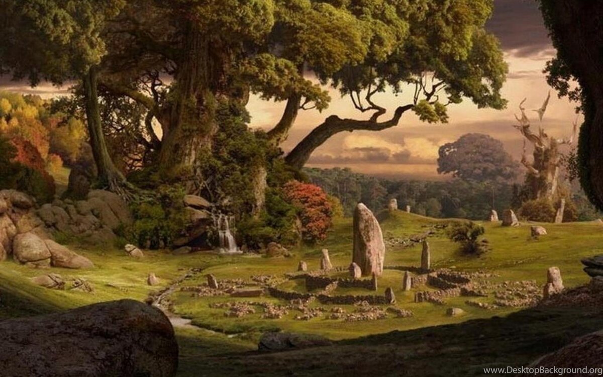 И побрел старец к деревне друидов, опираясь на свой прочный дубовый посох. И вошел он в деревню, и собрались вокруг него все, от мала до велика. Молодые матери притащили на руках младенцев, и старики приплелись, шаркая ногами и опираясь на крепкие спины своих сыновей.