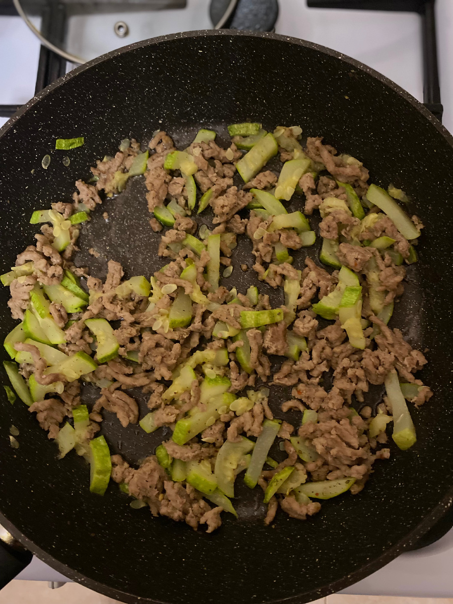 За целый день не успела приготовить ужин. День был занят маленьким ребёнком, уборкой и стиркой) Вечером приехали домой и муж попросил что нибудь приготовить на скорую руку. И так, нам понадобиться: 1 средний кабачок фарш(у меня свино-говяжий) 300гр рис фасованный 2 пакета на разогретую сковороду кладём фарш и обжариваем его(я готовила без масла), далее добавляем нарезанный кабачок, и тушим на среднем огне Параллельно ставим кастрюлю с кипяченой водой и кладём туда 2 пакета риса у меня рис нужно было варить 15 мин, пока рис варился я довела до мягкости кабачок с фаршем и выключила огонь Когда рис был готов, добавила его к кабачкам и фаршу, перемешала и добавила специи по вкусу У меня это(перец, адыгейская соль, кунжут) Перед самой подачей добавила соевый соус по вкусу и зелёный лучек. Получилось вкусно, сытно а самое главное всего за 30 минут. Муж доволен)