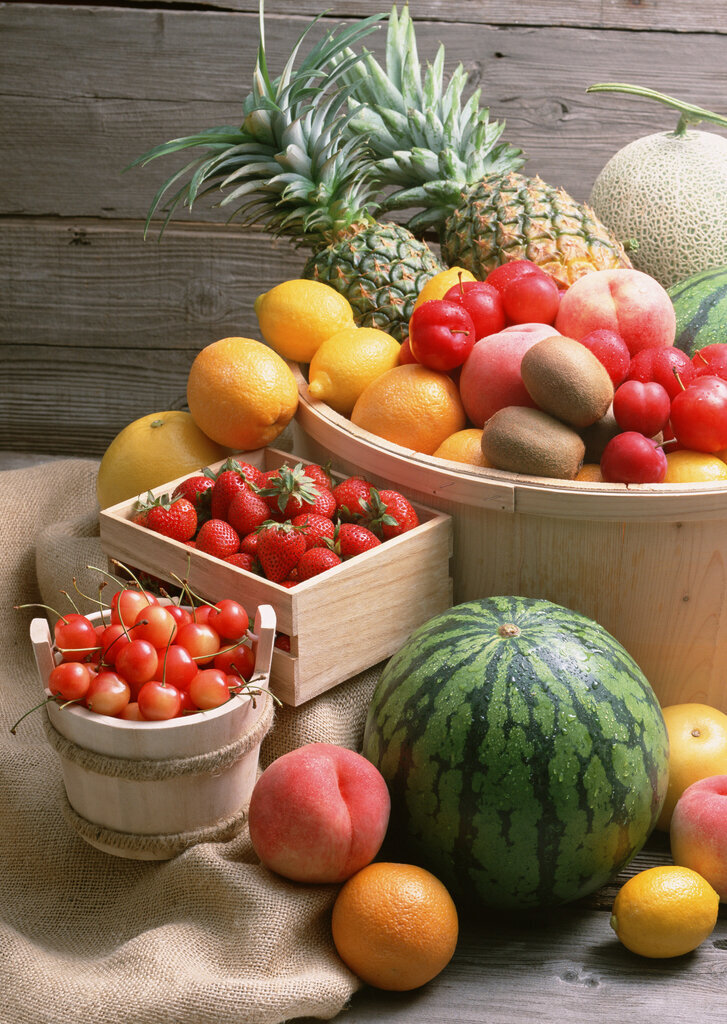 - Фрукты, ягоды, овощи, зелень богаты клетчаткой, витаминами B и С.