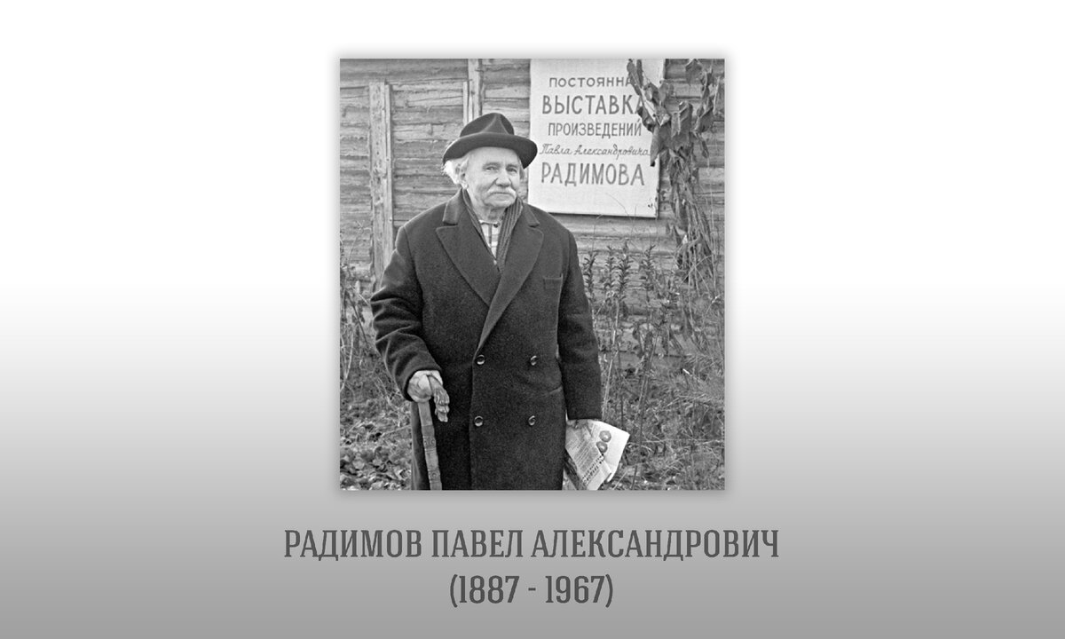 Радимов Павел Александрович (1887-1967 гг.). Уникальная личность, добрейший человек и особенный художник. Он оставил огромное наследия своего творчества, посвящённого нашему городу и его окрестностям. Родился 11 сентября 1887 г., село Ходяйново Зарайского уезда Рязанской губернии. Умер 12 февраля 1967, город Хотьково. В 1911 г. окончил историко-филологический факультет Казанского университета. В 1912–1923 гг. преподавал историю искусств в Казанской художественной школе. В 1918–1922 гг. был инструктором и заведующим отделом изобразительного искусства Наркомата просвещения ТАССР. Художник, поэт и общественный активист, организовал много выставок по всей стране. Был последним председателем Товарищества передвижников, первым председателем Ассоциации художников революционной России (АХРР) и одним из создателей Союза Подмосковных художников. Закончил духовную семинарию, потом Казанский университет на филолог, учился живописи у Николая Фешина, писал стихи и с 1930х жил в Абрамцево в поселке х