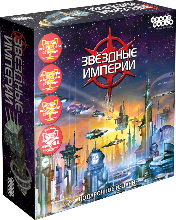 Сегодня хочу рассказать об одной из своих любимых игр - "Звездные империи". Стройте космические базы и корабли - отправляемся крушить врага! По механикам "Звездные империи" - дуэльная колодостроительная игра. Вы и соперник получаете по стартовой колоде, состоящей из 10 карт космических кораблей. Эти корабли приносят вам деньги, либо наносят урон сопернику. В дальнейшем на полученные деньги Вы можете покупать с общего рынка корабли и базы, которые увеличат доход, защиту, урон по врагу а так же позволят очистить колоду от слабых карт. В небольшой коробке с игрой находятся объемная колода карт и правила игры. В моем подарочном издании есть еще колода с дополнениями, но их я даже не распечатал. Карты плотные, глянцевые. К качеству претензий нет. Если играть часто то лучше надеть протекторы, но тогда колода значительно увеличится в объеме. Элементарные правила, простые и понятные иконки на картах, а так же отличные арты сделали игру самой популярной в своем роде. Еще можно добавить, что