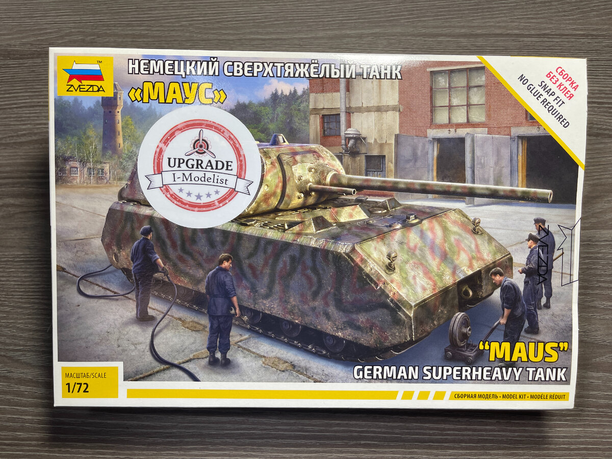 Всем привет! Еще одна из новинок Звезды - Маус. В этот раз делал предзаказ в Я моделист. Краткая справка Panzerkampfwagen VIII «Maus» (Maus — «Мышь», иное название — Porsche Typ 205 или Pzkpfw.VIII Maus) — сверхтяжёлый танк, спроектированный в Третьем рейхе в период с 1942 по 1945 годы под руководством Фердинанда Порше. Является самым крупным по массе танком из всех, когда-либо воплощённых в металле (боевая масса — 188,9 тонн). Было построено всего два экземпляра машины. В боевых действиях не участвовал. На сегодняшний день в мире сохранился только один танк «Маус», собранный из частей обоих экземпляров, в Техническом центре в парке «Патриот». Общая информация Производитель - Звезда Артикул - 5073 Масштаб - 1/72 Деталей - 91 шт Размер - 14 см Миниатюра - нет Фототравление - нет Доп. элементы - нет Рекомендуемая краска Звезда / Tamiya 5 - серебро / X11 - silver 8 - вороненая сталь / X10 - blue steel 12 - красный / XF7 - red 18 - желто-оливковый / XF60 - yellow-olive 35 - зеленый / XF81