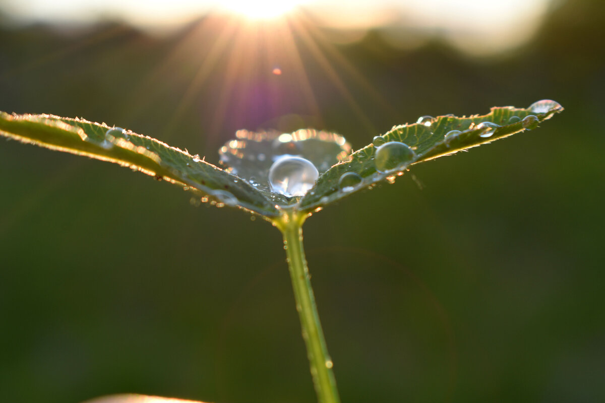 Сотканный утренней росой Туман покрыл собою поле И проводов треск осевой С гласами птиц слит поневоле. Шкварчат те струны медных нот, Ворча, что раннею порою, Попали те в водоворот, От капель нету им покоя. И в дымке затерялся пёс, Сливаясь с белизной молочной И остовы - стволы берез - Пропали в влаге водосточной. И клевер бледной зелены Поднял сиреневые главы, И среди трех мне не видны Четырёхлистные их сплавы.