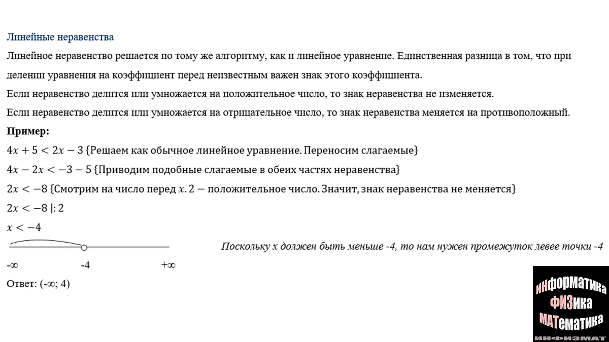 Алгоритм решения линейного неравенства