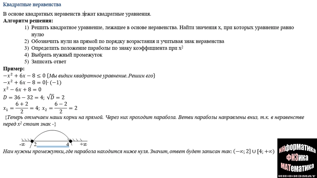 Алгоритм решения квадратичного неравенства