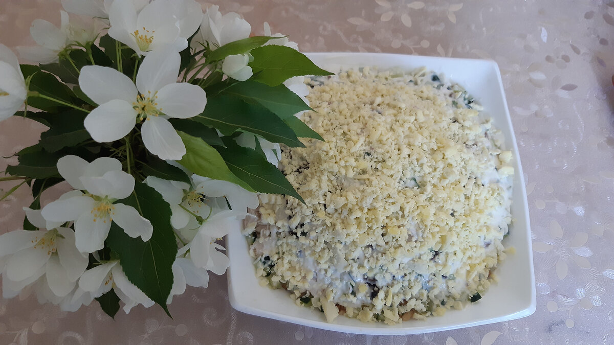 - По соли и майонезу - всё индивидуально. Я - не любитель промазывать каждый слой майонезом и соль сыплю слегка, не на каждый слой.