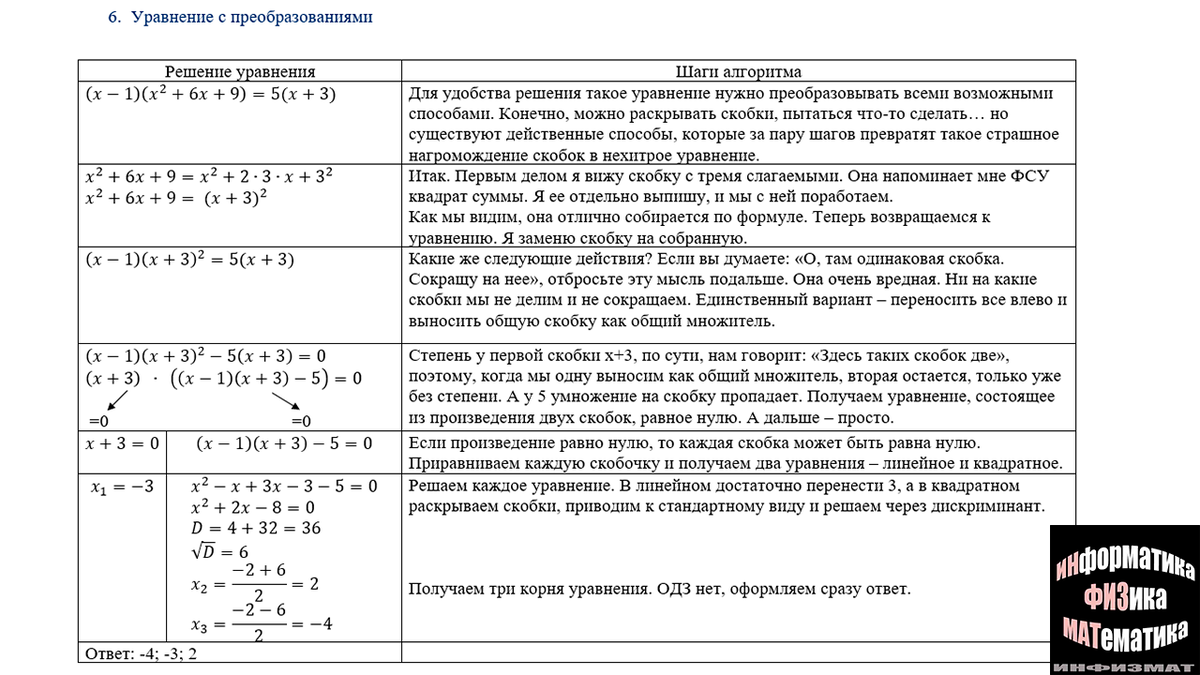 Разбор уравнения с преобразованиями из №20 второй части ОГЭ математика