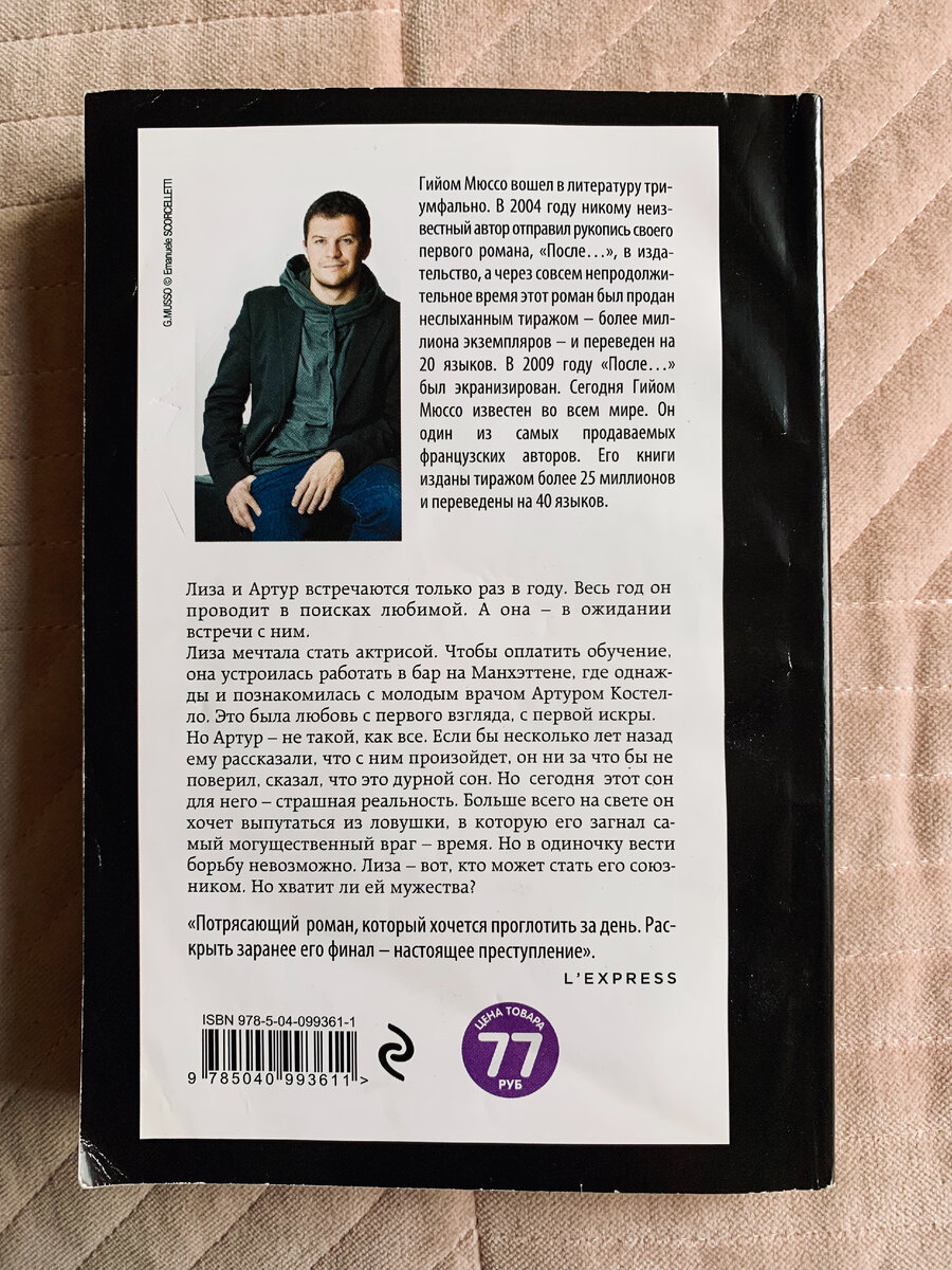 Про автора Гийом Мюссо слышала много, но вот знакомится с его произведениями не спешила. Отталкивало то, что его книги больше с романтическим подтекстом. Также, многие читательницы утверждали, что автор "выдыхается к концу" своих произведений. Интерес взял вверх и я быстро купила "Здесь и сейчас" Гийом Мюссо. Кстати, эту книгу часто называют "мотивационной". Считается, если книга ничего не учит - она пустая, всегда должен быть подтекст. Давайте немного про автора. Во-первых, он покорил сердца читателей и читательниц своим первым романом "После". Книга продана большим тиражом и была переведен на более 15 языков. Во-вторых, его некоторые произведения экранизированы. В-третьих, французские писатели имеют некий шарм, чем привлекают внимание. В-четвертых, его произведения хочется "проглотить" за день. Подобные высказывания можно найти на заднем обороте книги. В пятых, книга легкая и рассчитана на большую аудиторию. Достаточно ли этих пунктов, чтобы познакомится с писателем? О чём книга "Зд
