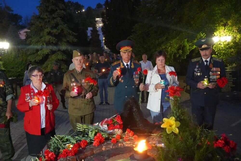 Всем здравствуйте! Двадцать второго июня, Ровно в четыре часа, Киев бомбили, Нам объявили, что началася война! Вся Россия сегодня в 4 часа утра зажгла свечи памяти и скорби по погибшим 27 000 000 наших людей, убитых и погибших во время Великой Отечественной Войны! Крым. А в Донецке на Саур Могиле, где во время ВОВ шли ожесточенные бои с фашистами... и до сих пор они идут в ДНР и ЛНР, прошел большой концерт Памяти. На который приехали московские артисты Бабкина, Басков, и многие другие!