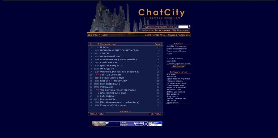 Чаты – это было нечто. Собственно, слово «было» тут употреблять не совсем верно, он есть и сейчас, просто в немного трансформированном виде. По идее социальные сети есть порождение чатов, как мне кажется. А тогда, в конце 90-х, чаты и выполняли функцию социальных сетей. Всякий приличный сайт обзаводился своим чатом или как минимум – гостевой книгой, которая от него не сильно отличалась. Например, при том же «Яндексе» чатов было штук тридцать, если не больше. Мало того, были целые чат-сайты, где любой мог найти себе беседу по душе. Я, например, ошивался на «ChatCity», в чате «Тем, кому за 25». Мне тогда было как раз за 25, так что все по-честному. На самом деле это было реально интересно. Во-первых, мы, еще не избалованные интернетом, офигевали от того, что вот тут, на одной страничке, собрались люди со всей страны, не сказать - мира. Была в этом какая-то безграничность, к которой сейчас мы привыкли настолько, что просто ее не замечаем. Я помню, что как-то была перекличка, у кого сейчас