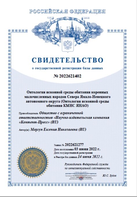 Онтология исконной среды обитания коренных малочисленных народов Севера Ямало-Ненецкого автономного округа