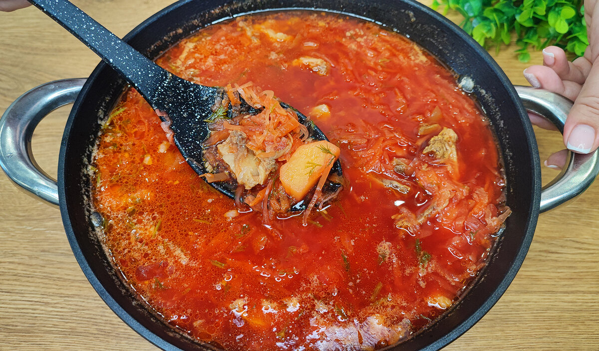 Приветствую вас на канале "Карамелька"! Сегодня я хочу поделится своим способом приготовления ароматного, наваристого и безумно вкусного борща. Секрет приготовления этого первого блюда у каждой хозяйки свой, я же сегодня приготовлю именно так как готовила моя бабушка, мама и конечно же я, как говорится все по классике)). В нашей семье этот борщ абсолютный чемпион среди первых блюд. Приступим к приготовлению! 📌Для приготовления нам понадобятся следующие продукты: Залог ароматного и очень вкусного борща, это конечно же говядина на косточке (у меня сегодня говяжьи ребрышки). Мясо хорошо промываем и ставим на плиту варим 1-1,5 часа. Кастрюлю для приготовления лучше выбирать с толстым дном (я готовлю в чугунном казане). Как только мясо сварилось вынимаем его из бульона. Овощи все промываем и очищаем от кожуры. Картофель режем на кубики средних размеров и отправляем в кастрюлю, варим до полуготовности и добавляем капусту. Убавляем огонь и варим на медленном огне. Болгарский перец нареза
