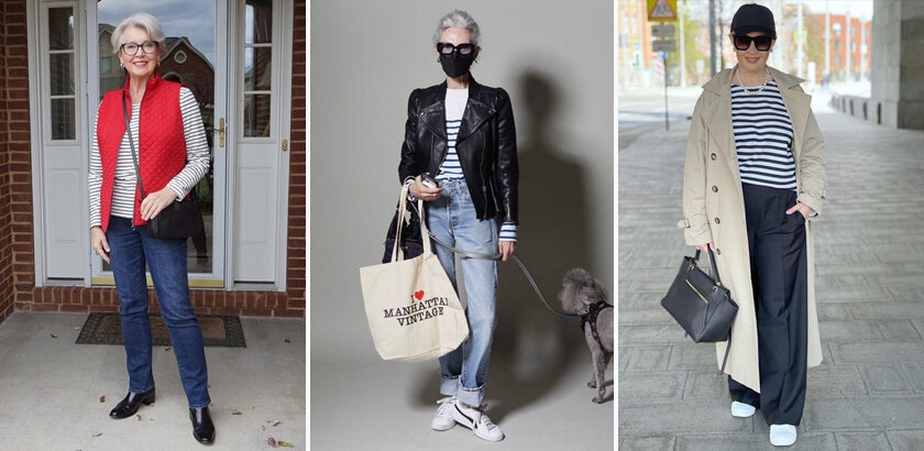 «У стиля нет возраста» - очень хорошее высказывание. Любая женщина и в 20, и в 50 лет желает выглядеть модно и при этом чувствовать себя уверенно и комфортно. И я вам расскажу, что носить после 40-50 лет, с помощью каких вещей легко взбодрить и омолодить гардероб. Самое главное – это актуальность вещи, если она современна, она априори будет ассоциироваться с данной реальностью и омолодит свою владелицу. Но есть вещи, которые женщинам 40-50+ придают особый шарм… Тельняшка Тельняшка практически всегда относит нас к Франции, а значит, привносит шик. Тельняшка актуальна всегда, это классическая вещь, которая не выйдет из моды никогда. Для того чтобы усилить «этот шик», добавьте к тельняшке жемчуг, как делала Коко Шанель. Идеальный тандем: тельняшка и жемчуг! Многие боятся горизонтальных полос, которые имеют свойство расширять. Все верно. Но есть один нюанс, который поможет этого избежать: выбирайте одинаковую ширину полос (белых и темных), и вы не увеличитесь в размере ни на сантиметр)) Ру