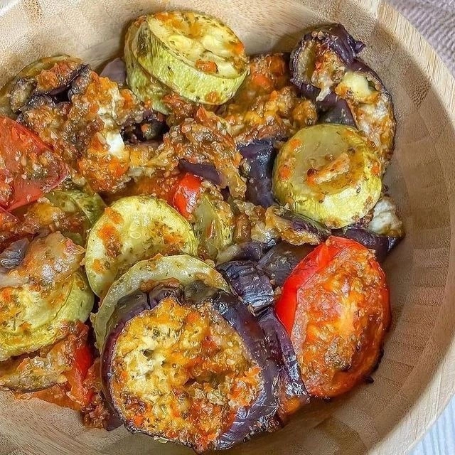#ппрецепты #легкие рецепты #готовим вкусно дома #подписывайтесьнаканал ⠀ Ингредиенты: Баклажаны-2шт Кабачки-2шт Помидоры-4шт(меньше среднего) Болгарский перец-2шт Чеснок-1 головка Зелень(у меня кинза+укроп)-2горсти Соль,перец,прованские травы Оливковое масло-2 ст.л ⠀ Приготовление: В чашу блендера выложить нарезанные на произвольные кусочки 2 помидора,перцы,к ним добавить чеснок,1 ст.л оливкового масла,зелень,соль,перец,прованские травы Измельчить ⠀ Остальные овощи нарезать на кружочки,баклажаны предварительно обильно посолить,оставить на 15 минут,а затем промыть под проточной водой ⠀ Сложить все овощи в пакет,влить туда соус,встряхнуть,чтобы он равномерно распределился,затем выложить всё в форму для запекания,застелив ее пекарской бумагой(у меня антипригарная,поэтому я этого не делала) Отправить запекаться в духовку при температуре 200° на 30 минут В самом конце полить оставшимся оливковым маслом ⠀ Подавать можно как в горячем так и в холодном виде,идеально на