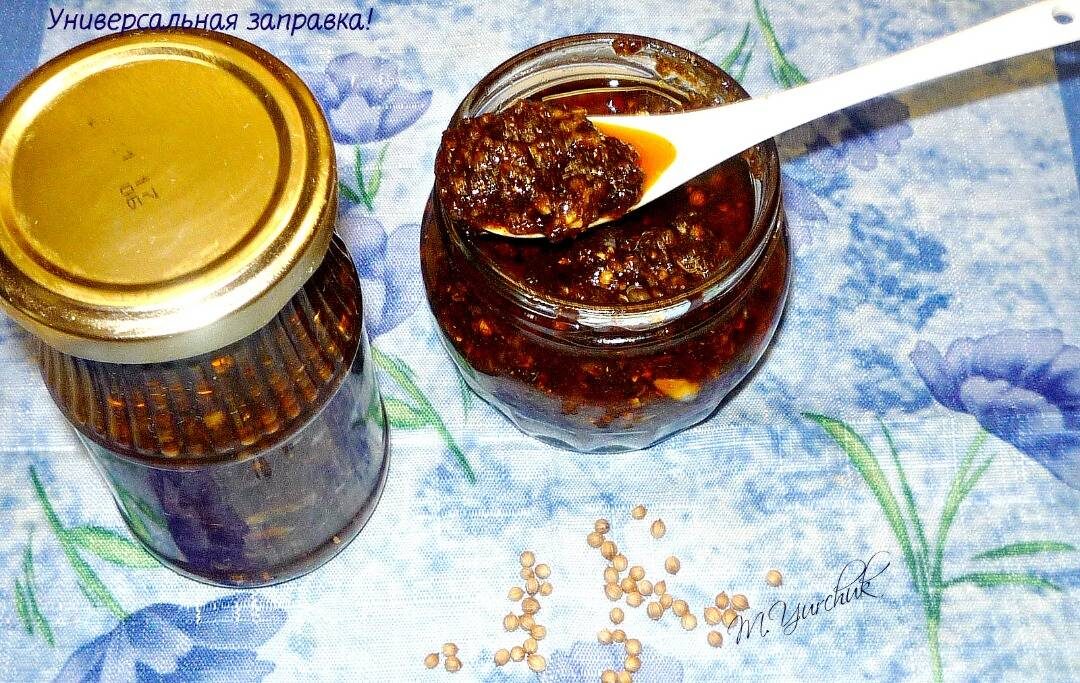 #летнееменю Рецепт взят из интернета канал «Вкусная минутка». Рецепт копирую, как увидела в видео. Такая заправка очень хорошо подойдет для приготовления салатов по-корейски. Но также ее можно добавлять в супы, в соусы, в маринады для мяса и рыбы. Такая заготовка и время экономит, и блюда с ней получаются вкусными! На баночку 130 мл нам понадобится: Ингредиенты: - Чеснок, - Кориандр горошком, - Перец черный молотый, - Перец красный острый, - Паприка, - Сахар, - Соль (с горкой), - Масло растительное Способ приготовления: Чеснок измельчаем через мелкую терку или при помощи пресса для чеснока. Как вам больше нравится. Добавляем соль и перетираем. Затем в ступке измельчаем кориандр. Добавляем к чесноку с солью. Туда же добавляем перец ч/м, к/м, паприку и сахар. Затем все заливаем горячим растительным маслом. Перемешиваем. Выкладываем в сухую чистую баночку и закрываем. Такая приправа может храниться в холодильнике приблизительно 5 месяцев. Ее можно добавлять при приготовлении салатов по-ко