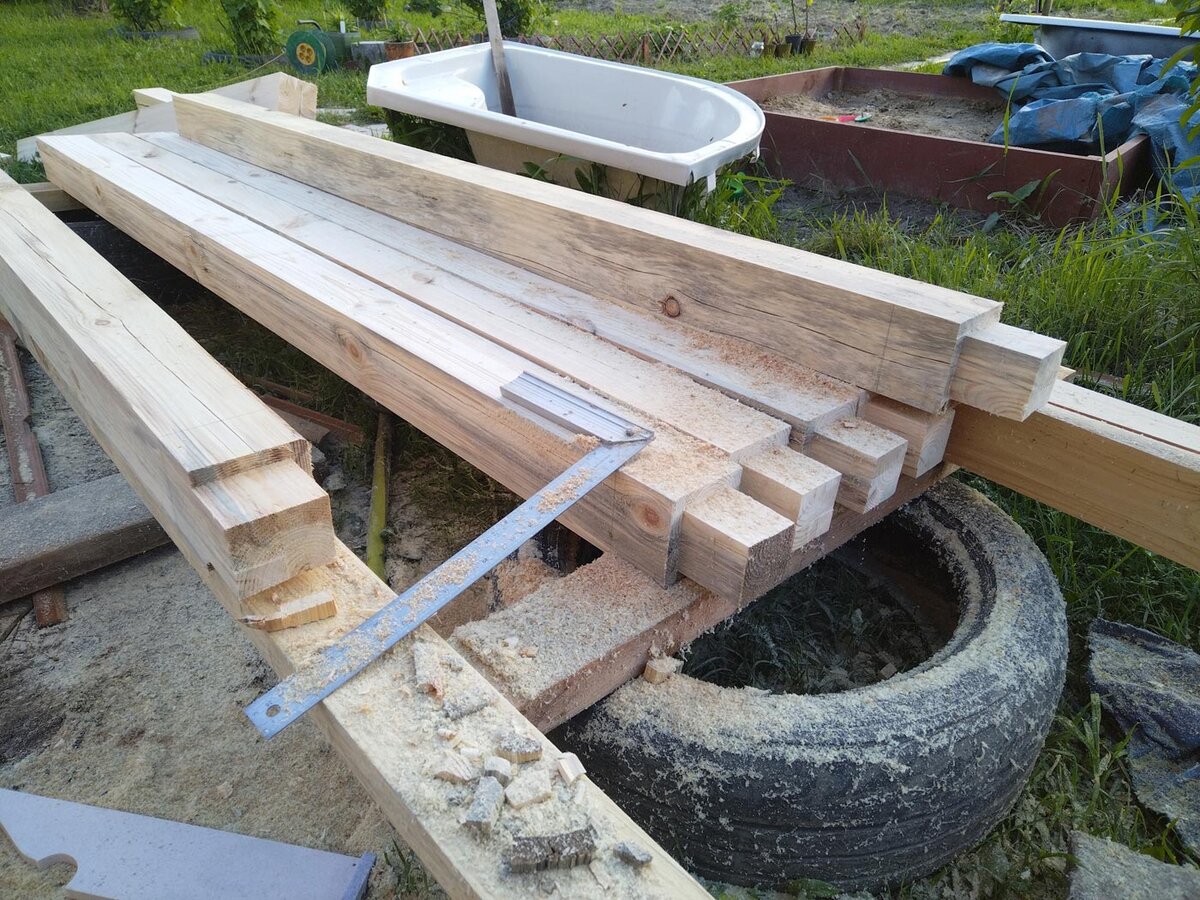 Продолжаю историю работы над террасой. Столбы навеса, да и сам навес решил делать без применения уголков и горы саморезов. Все соединения классические плотницкие: шип-паз, в четверть и в треть-дерева.