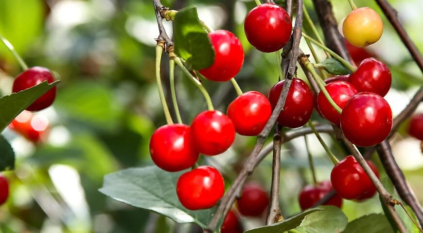 При поражении коккомикозом на верхней стороне листьев появляются красновато-бурые точки, которые вскоре сливаются в бурые пятна. На нижней стороне виден бело-розовый мучнистый налет. Листья буреют и осыпаются, а плоды покрываются черными точками, вмятинами, деформируются.