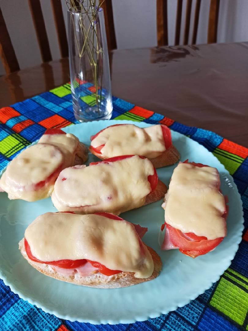 #летнееменю Горячие бутерброды в духовке с сыром и колбасой получаются очень аппетитными и вкусными 😋. Нижняя часть багета поджаривается до хруста, а внутри сочная, вкусная начинка - это просто праздник 🤗! Ингредиенты: батона или багета, помидор, сыр Российский, варёной колбасы, Майонез Способ приготовления: Приготовить все необходимые ингредиенты. Багет нарежьте тонкими ломтиками по диагонали (это удобно делать с помощью рифленого ножа для хлеба). Помидор нарежьте тонкими кружочками. Колбасу порежьте тонкими, эластичными ломтиками. Сыр можете также тонко нарезать слайсами (у меня уже был нарезанный) или натереть на крупной терке. Промажьте куски хлеба майонезом. Уложите на майонез по ломтику колбасы. Затем выкладываем кружочки помидора. Прикройте ломтиками сыра. Уложите бутерброды в форму для запекания и отправьте в нагретую до 180°С духовку. Запекаем 10-15 мин до расплавления сыра. Приятного аппетита 😋!!! Если Вам понравился мой рецепт и Вы приготовили по нему-мне будет очень прия