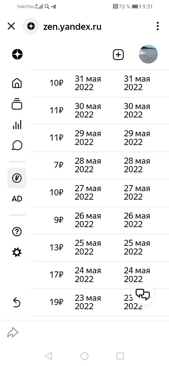 Доброго времени суток мои дорогие. Ну вот и прошел еще один, второй по счету месяц моей монетизации. Как я и обещала, сегодняшний обзор будет на эту тему. Про первый месяц монетизации на Дзене Вы можете прочитать в этом обзоре Мой первый месяц монетизации на Дзене. Там я все подробно написала. А теперь немного статистики. В этом месяце я написала 20 статей и 5 постов. Как я считаю довольно неплохой результат для новичка. Количество подписчиков прибавилось с 243 до 287 человек. Не так уж и много, как хотелось бы. НО... Каждый из Вас для меня очень дорог.Это чистая правда. Больше всего дочитываний было 30 мая- 1529, а меньше всего 18 июня-66. Моя аудитория на 90% состоит из женщин и только 10% мужчин посещают мой канал. Как мне кажется я все таки больше затрагиваю женские темы, поэтому и такой результат. Ну а теперь о самом интересном. Собственно говоря о моем заработке. Скажу сразу, что в этом месяце я выводила деньги на счет каждый день. Ну чтобы всем все было понятно. Если 23 мая я