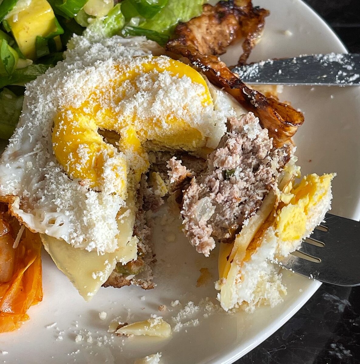 🍔БИФШТЕКС С СЫРОМ И ЯЙЦОМ, посыпанный тертый пармезаном 👆🏻уже стал мои любимым блюдом. Листай карусель и сохраняй. Может быть как самостоятельное блюдо. Если для вас много жиров - можно убрать сыр и сделать яйцо пашот, чтобы желток растекался. Очень хорошо с легким салатом, подойдёт на обед или ужин. А можно положить кусочек кето хлеба, лист салата и добавить натуральный соус и получится кето бургер, самый настоящий и очень сытный. Приятного аппетита! #кето #кетодиета #кеторецепты #кетопитание #кетозавтрак #кетоеда #кетоз #кетогеннаядиета #кетоужин