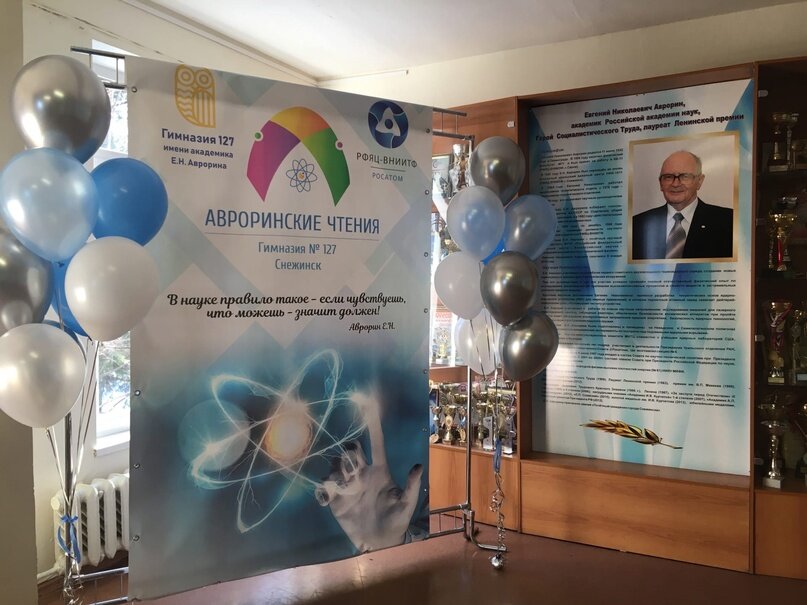 В.Н. Маслакова: Все началось в феврале 2018 года, когда гимназии было присвоено имя академика Евгения Николаевича Аврорина. Первой была мысль – создание музея. Он появился сначала виртуально на сайте гимназии. Затем при поддержке градообразующего предприятия, РФЯЦ-ВНИИТФ, музей в гимназии был открыт. Мы пошли дальше. Ориентируясь на школу №135 имени академика Литвинова, которая проводит «Литвиновские чтения», наши педагоги по аналогии предложили организовать «Авроринские чтения». Было решено провести их в феврале 2019 года. Получив разрешение на проведение «чтений» от первого руководителя РФЯЦ-ВНИИТФ – директора Михаила Евгеньевича Железнова – начали активно готовиться.