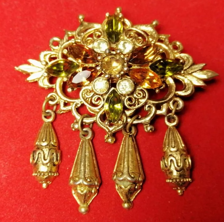 Всегда считала, что вся винтажные броши меня привлекают в большей или меньшей степени. Именно про это мой блог – делиться винтажной красотой и знаниями о ней. Никогда бы не подумала, что когда-нибудь смогу показать Чехословацкие броши, которые мне не нравятся. Но сегодня именно об этом пойдет речь. 1 Чехословацкие броши, которые мне не по нраву Вы уже заметили, что все представленные фотографии чем-то схожи? Все броши имеют одну стилистику исполнения: металл с золочением, подвески из цепей или выгнутых капель. И что уж говорить, все они выполнены с предпосылкой на королевский размах: крупный размер, богатый декор и блеск цветных кристаллов. 2 3 Надо сказать, что не сразу узнала об этой серии брошей. Только однажды столкнувшись с подобным винтажным украшением, стала замечать, что имеются и другие. Да, в них была своя изюминка, другая форма, цвет, подвески. Однако сразу было понятно, что все они имеют одно стилевое решение. 4 5 Не заметить их и не восхитится этой красотой, не могла. Мне