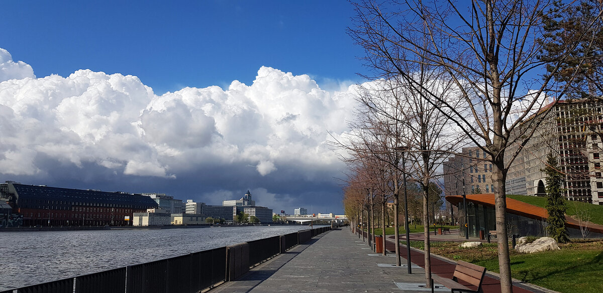 Флагманская набережная Москвы, названная в честь художника-авангардиста Марка Шагала, приоткрыла первый участок, всего 810 м. из 4 км. Отрезок от проспекта Лихачева до улицы Льва Юдина был готов еще осенью, но только в конце мая сняли забор и убрали охрану. Теперь по ней можно беспрепятственно ходить и оценивать, как здесь все благоустроили. Пока всё достаточно избито. Вымощенные гранитной плиткой тротуары, вело- и беговые дорожки с мягким покрытием, газоны с разнотравьем и геопластика для защиты от холодного речного ветра. Парочка простоватых детских площадок из дерева. Укомплектованы они для центра города достаточно бедно: полоса препятствий, качели, музыкальные классики, карусели и пружинки. Из прикольных элементов только зеркала и центрифуга. При этом анонсировалось что-то невероятное, круче круазеттов. Возможно, когда набережную сделают полностью (не готов еще большой кусок от улицы Льва Юдина до затона Новинки), она действительно затмит легендарные аналоги. В концепции предусмо