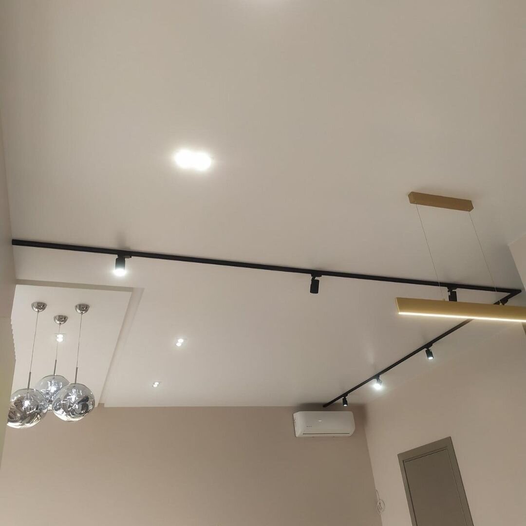 Не всегда есть возможность детально продумывать дизайн потолка (особенно у тех, кто работает 24/7), изучать картинки в Яндекс с готовыми решениями или соц.сети потолочных компаний. И уж тем более, не у всех есть возможность нанимать дизайнера интерьера. Поэтому мы подготовили для вас 5 типов потолочных решений, которые "попадают в самое сердечко" абсолютно всем и подходят практически для любого помещения. 1. Трековое освещение - листайте галерею наших работ. Трековое освещение идеально подойдет для: гардеробных, кабинетов (рабочих или образовательных зон), зоны готовки на кухне. Важно! Светильники являются поворотными и могут двигаться по треку, а это значит, что вы можете самостоятельно регулировать направленность света. В случае необходимости замены одного светильники - он легко снимается с трека. 2. Световые линии - листайте галерею наших работ Световые линии могут быть как вполне самостоятельным источником света, так и дополнительным. Они также могут быть расположены над определен