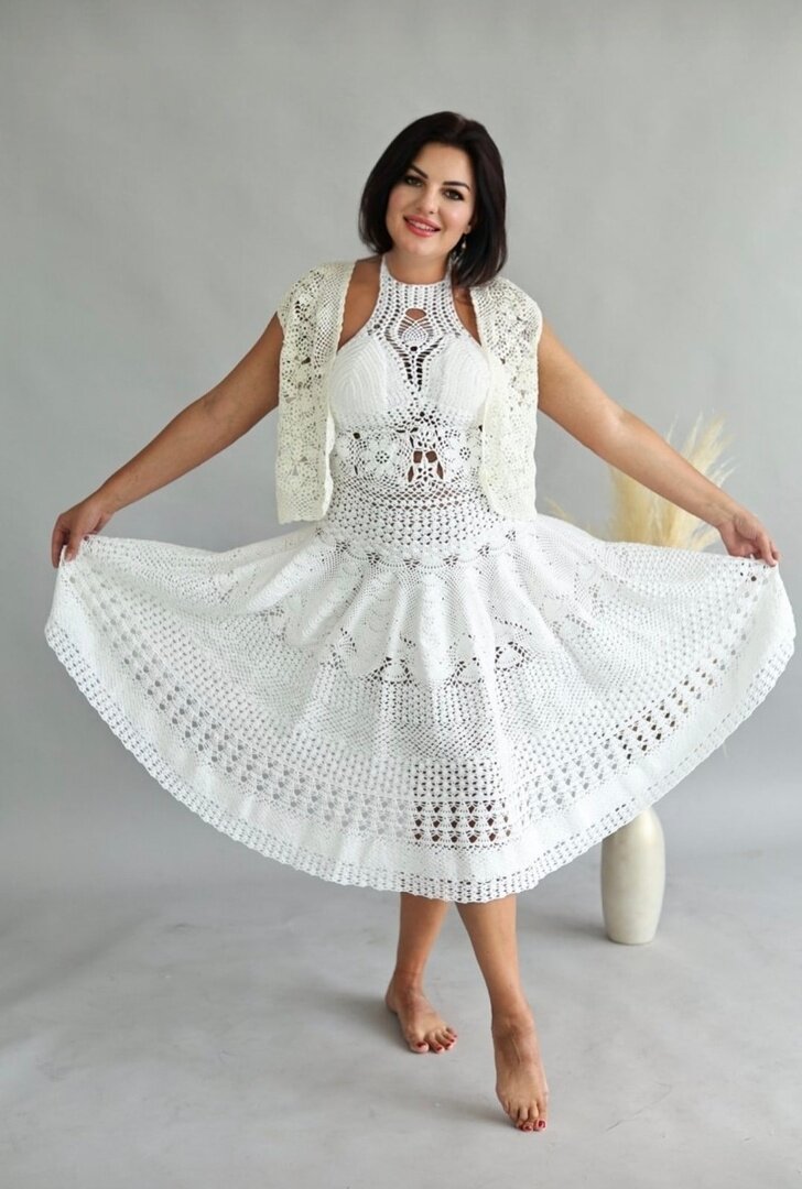 Платье универсального размера 46-50. На шее завязки, сзади на шнуровке. Идеальный вариант для свадьбы, торжества или повседневной носки.