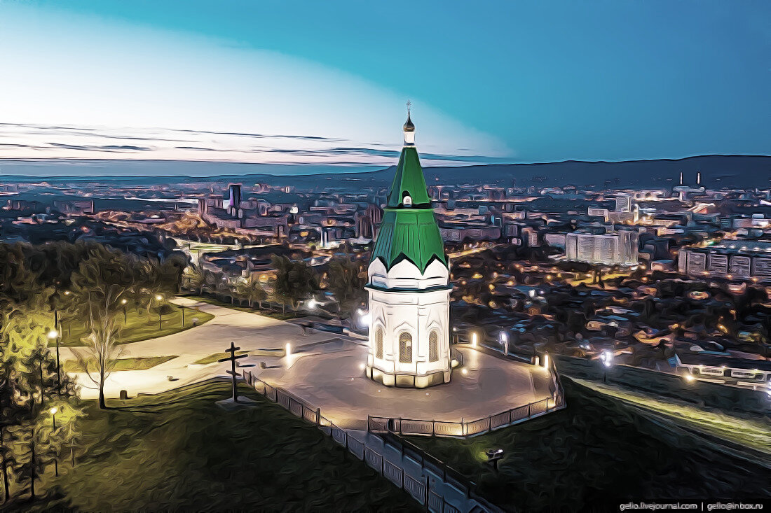 Часовня на караульной горе, корабль плывущий по шумному городскому морю
