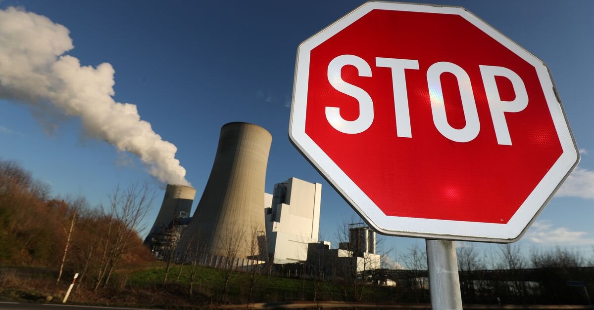Знак "Стоп" стоит перед бурой электростанцией Neurath немецкой компании RWE, к западу от Кельна, Германия. Пять молодых людей (22 июня) подадут иск против 12 европейских правительств из-за международного пакта, который позволяет инвесторам в ископаемое топливо подавать в суд на страны за принятие мер по борьбе с изменением климата. Первоначально разработанный для поддержки инвестиций в энергетический сектор бывших членов Советского Союза, Договор к Энергетической хартии (ДЭХ) позволяет инвесторам подавать в суд на страны из-за политики, которая наносит ущерб их инвестициям, и был заклеймен участниками кампании как препятствие для действий в области изменения климата. Истцы представляют страны, пострадавшие от недавних стихийных бедствий, связанных с изменением климата, включая Германию и Бельгию, которые в прошлом году пострадали от разрушительных наводнений после сильных дождей, которые, по словам ученых, стали более вероятными из-за изменения климата. В их иске будет содержаться прос