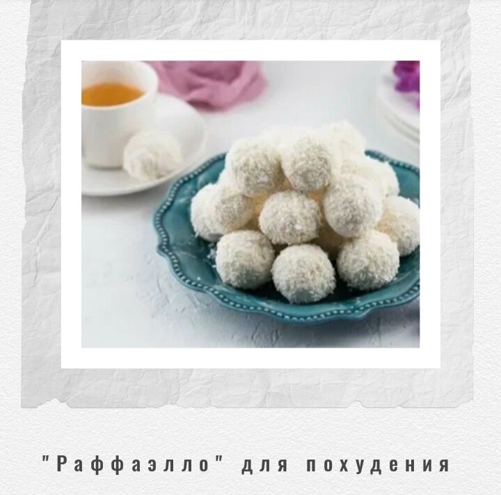 В одной штучке магазинных конфет - 68 ккал. В стандартной коробке - более 1000 ккал! Для того чтобы сжечь 1000 ккал, обычному человеку нужно крутить велосипед 4 - 5 часов. Предлагаю вам сделать низкокалорийные рафаэлки для похудения. Калорийность в них будет в четыре раза меньше, чем в обычных. Ингредиенты Творог 0% - 150г. Кокосовая стружка обезжиренная - 20 г. Миндаль - 15 шт. (30 г.) Подсластитель - по вкусу На 100 г - 137 ккал в 1 штуке - 18 ккал. Приготовление Хорошо взбить миксером (или блендером) творог до пастообразного однородного состояния. Добавить сахарозаменитель и бо'льшую часть кокосовой стружки. Разделить состав на 15 частей, в каждую порцию вложить миндальный орех и сформировать из этого шарик, обваляв в оставшейся стружке. #похудение и правильное питание Приятного аппетита