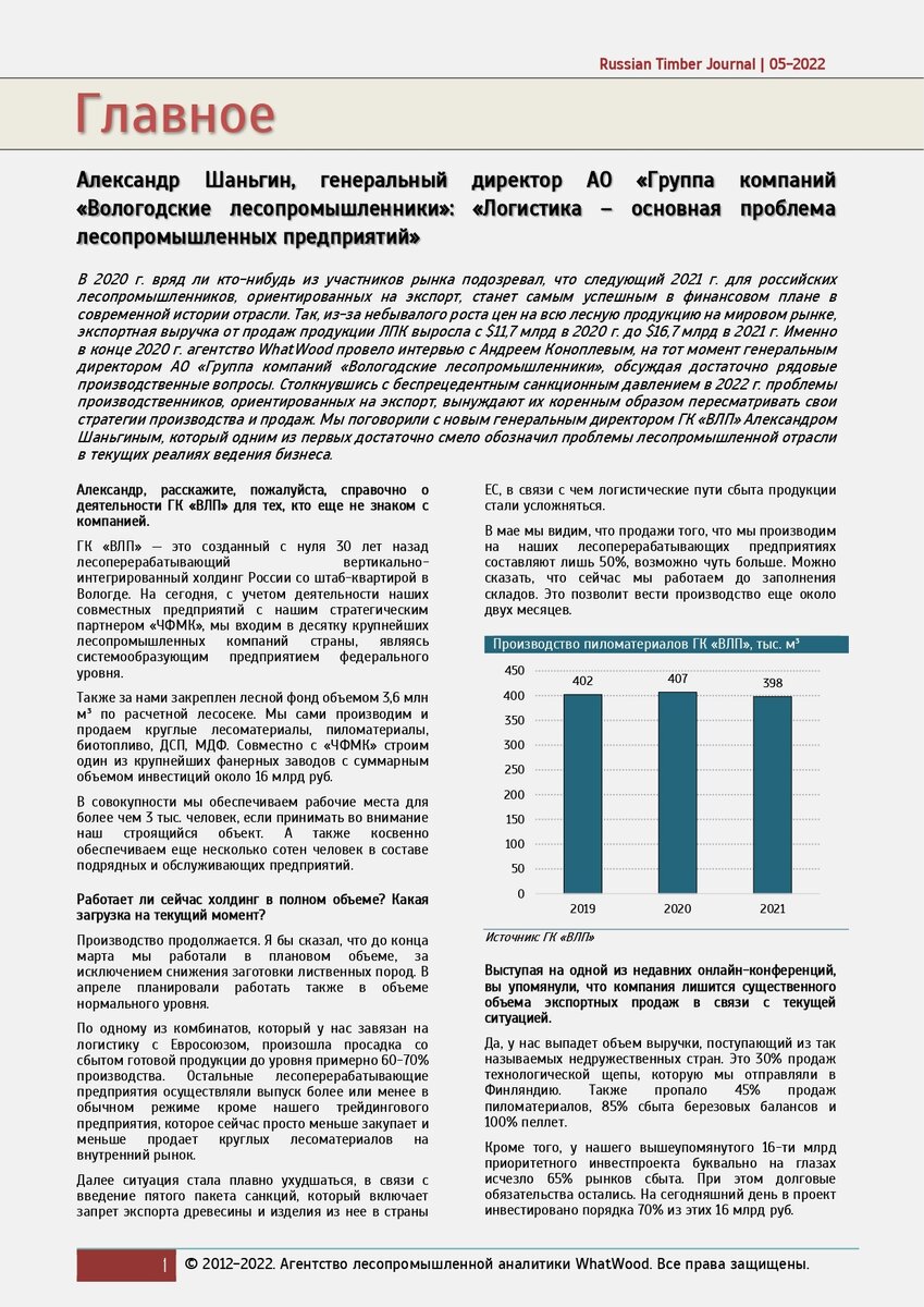Читайте свежее интервью генерального директора АО «Группа компаний «Вологодские лесопромышленники»: «Логистика – основная проблема лесопромышленных предприятий» в журнале «Russian Timber Journal»