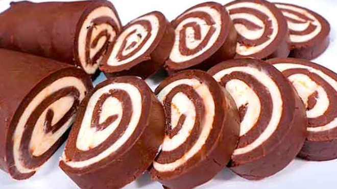 Если хотите удивить своих родных прекрасным десертом, да и похвастаться что приготовили своими руками, то рекомендую брать рецепт на вооружение, как рулет без выпечки из печенья может быть вкуснее торта. Мягкий рулетик со сливочным наполнением готовится просто и быстро. Мой младший сын сделал такой же, одновременно со мной безо всяких проблем. И теперь сам может любого обучить. Рецепт рулета с какао без выпечки. Мельчим кухонным комбайном или мясорубкой печенье в крошку. Мне нравится шоколадное , но вы можете взять любое. Если будете делать в мясорубке, то лучше дополнительно промять картофелемялкой или скалкой. Все ингредиенты будут указаны далее, поэтому читайте рецепт до конца. Для яркого насыщенного шоколадного цвета добавляем две ложки какао с горкой. Сразу заливаем подогретым молочком и добавляем сахар. Месим массу руками до ровной однородной консистенции Заворачиваем тесто в пленку, отправляем в холодильник на 15 минут Приготовим начинку для рулета. Кладем