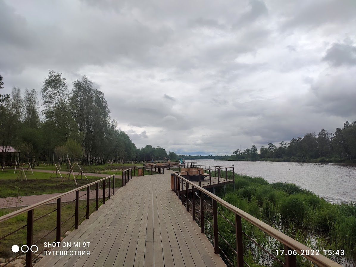 Деревянный настил достаточно длинный и широкий и гулять по нему очень приятно.