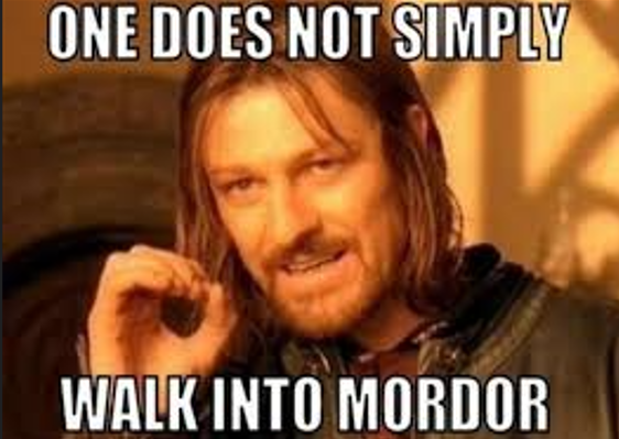 Тут речь о чём: о том, что «нельзя взять просто так и войти в Мордор». Но это у Толкиена так, а когда фраза пошла в народ, то в ней сразу же увидели огромный прикладной потенциал. Её взяли на вооружение и стали палить по интернету изо всех пушек: