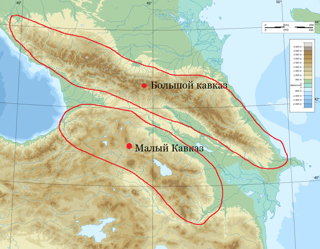 Раньше этот географический объект по греческой традиции именовали Антикавказом. Собственно Кавказом древние эллины величали большой горный хребет, протянувшийся от Черного до Каспийского моря и имеющий выход к побережью каждого из них. А расположенную южнее и меньшую по размеру и высоте горную систему закономерно величали Антикавказом. Ныне почти повсеместно предпочитают термин Малый Кавказ, но старое название и сейчас можно найти в современных текстах. Малый Кавказ почти параллелен Большому и соединяется с ним Лихским хребтом, который находится на территории Южной Осетии и Грузии. Его общая длина – до 600 километров, а ширина – около 120 километров. Но это не отдельная горная система. Фактически она представляет из себя неразрывную часть североиранской и североанатолийской гряды, с которыми имеет общее геологическое происхождение. По этой причине Малый Кавказ на западе граничит с Понтийскими горами, а на востоке его продолжением является хребет Эльбурс. Данная горная система, особенно