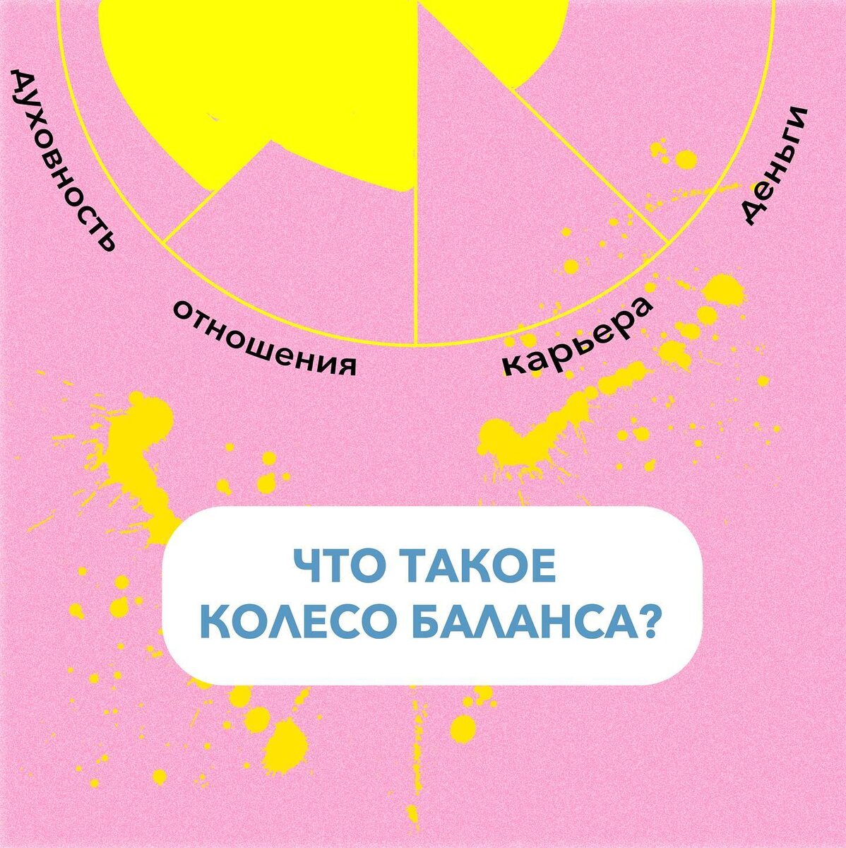 Колесо баланса — это один из известных методов анализа текущего состояния жизни, «мгновенный срез». Его придумал Пол Дж. Майер, американский бизнесмен, миллионер и мотивационный коуч. Колесо баланса — это круг, разделенный на сектора. Обычно их 8, но можно сделать и больше, если хотите. Каждый сектор — сфера жизни: •карьера •семья •друзья •здоровье •хобби •деньги •отдых •саморазвитие Теперь вам нужно оценить по десятибалльной шкале, насколько вам нравится текущее положение дел в каждой из сфер: 0 — полный провал, 10 — все супер. Ноль будет в центре круга, десятка — на окружности. Заштрихуйте сектора до уровня, который вы определили. Получилось ровненькое колесо? Вряд ли. Обычно считается, что значения 0-3 тревожные, 4-7 — требуют внимания, а 8-10 близки к идеалу. Те сферы, которые «проседают», и будут вашими точками роста 🔝 Если вы получите средние цифры по всем сферам, это не значит, что ваша жизнь серая и унылая. Просто вы не до конца раскрываете свой потенциал. Прямо рядом с ри